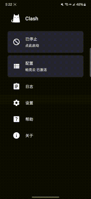回到 Clash 主界面,此时 「 配置 」 栏会提示 「 已激活 」