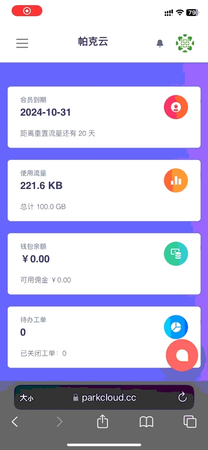 使用浏览器登录进入帕克云首页 「 用户中心 」 ,如果您忘记了帕克云官网地址可前往地址发布页 点击前往 找到最新的官网地址