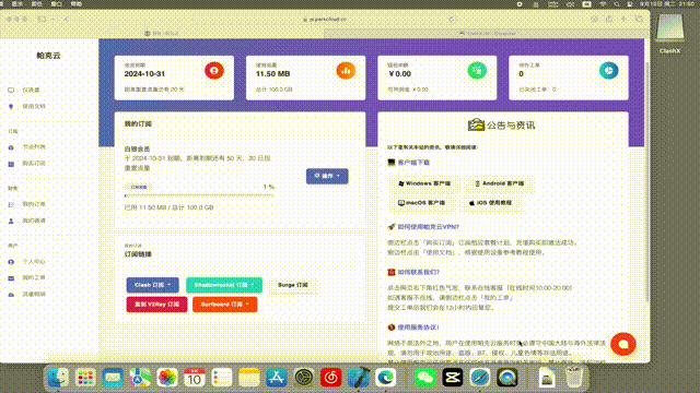 在 「 订阅链接 」 中找到 「 Clash订阅 」 点击 「 一键导入Clash 」 按钮