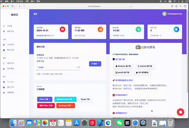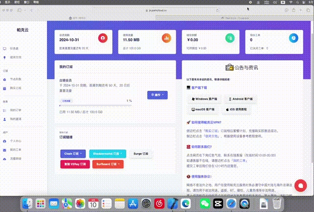 使用浏览器登录进入帕克云首页 「 用户中心 」 ,如果您忘记了帕克云官网地址可前往地址发布页 点击前往 找到最新的官网地址
