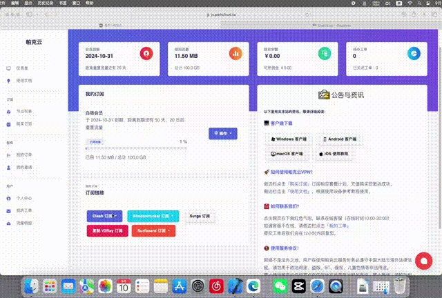 在 「 订阅链接 」 中找到 「 Clash订阅 」 点击 「 复制Clash订阅 」 按钮